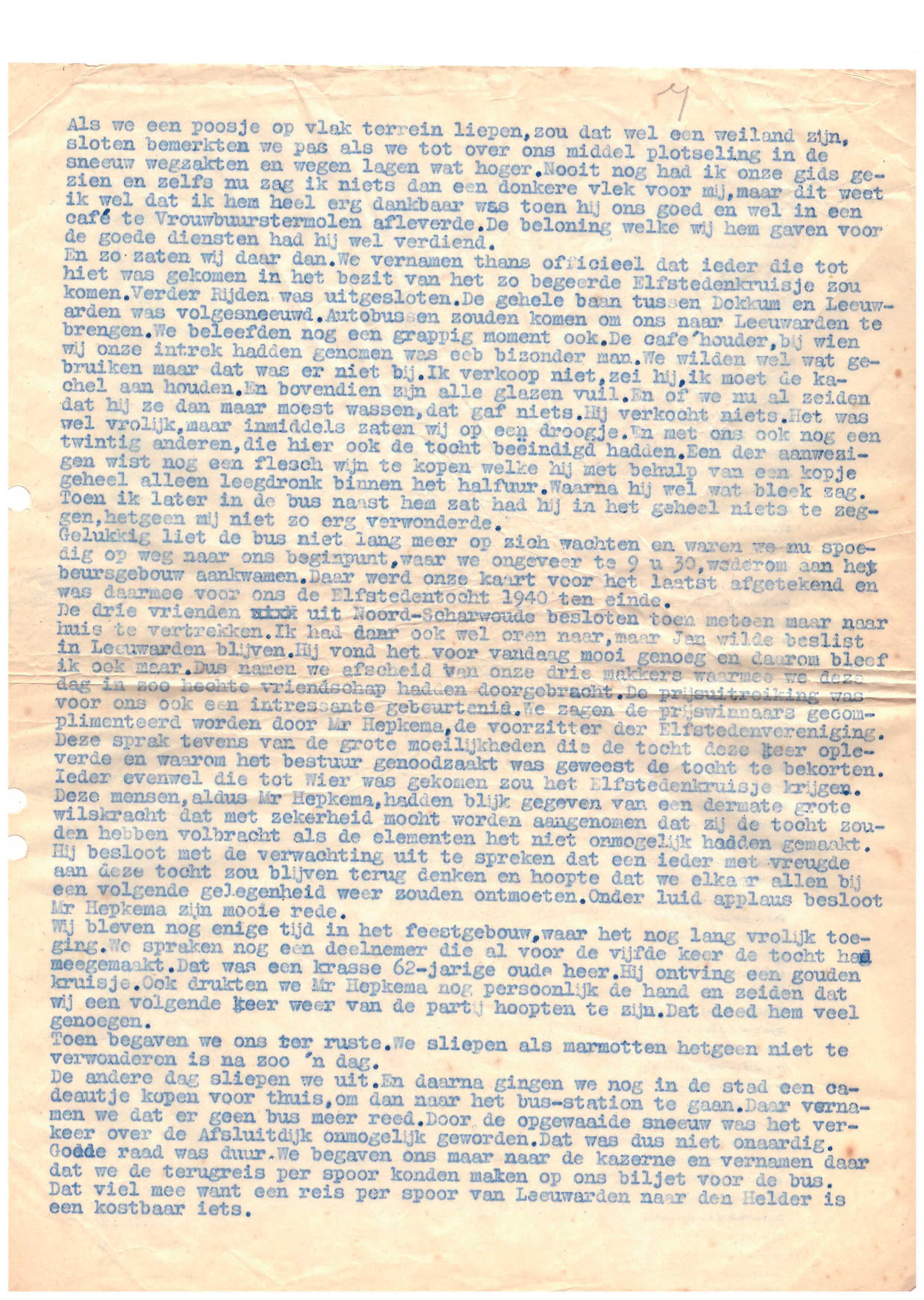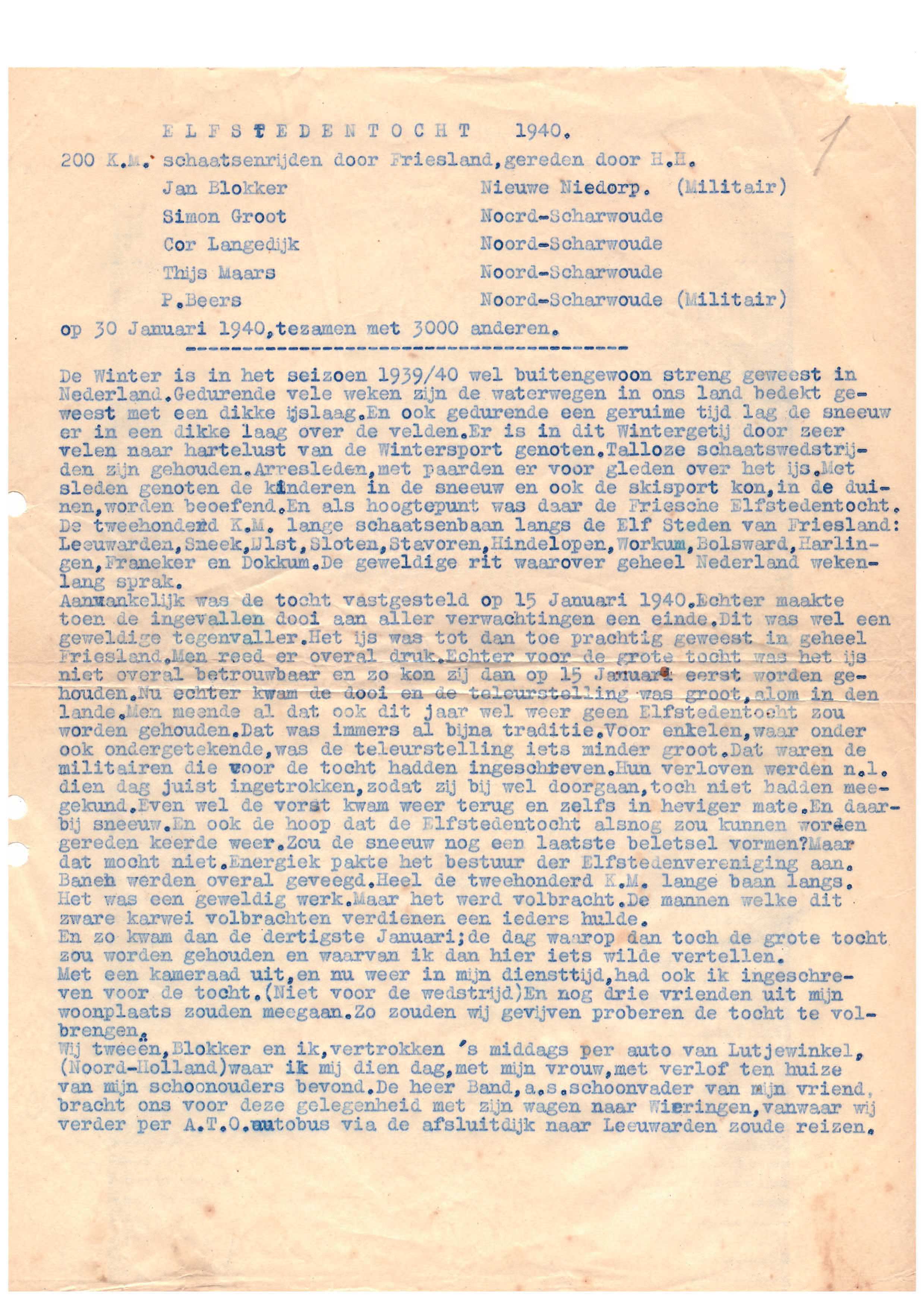 Verslag Elfstedentocht 1940 van Piet Beers (1910-1980) uit Noord-ScharwoudeVerslag Elfstedentocht 1940 van Piet Beers (1910-1980) uit Noord-Scharwoude.Verslag in pdf